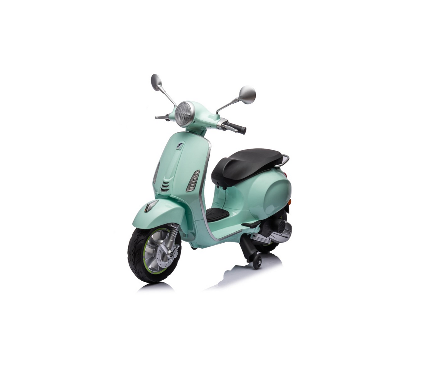Compact in formaat, groot in uitstraling. Deze kinder-Vespa in mintgroen straalt Italiaanse elegantie uit en is gemaakt om elk ritje bijzonder te maken. Laat ze schitteren bij elke rit.