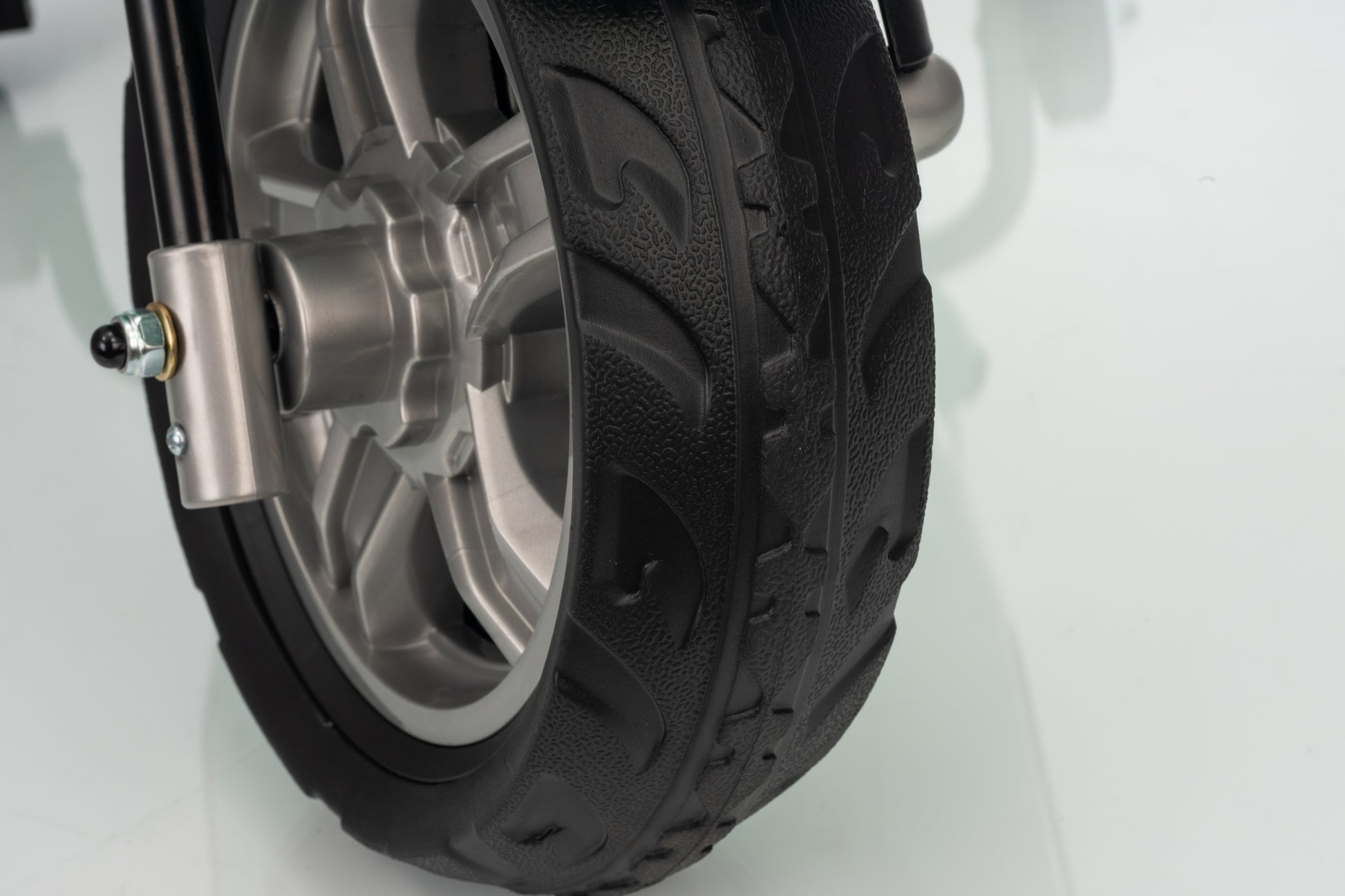 Deze Vespa scooter ziet er niet alleen geweldig uit, maar rijdt ook comfortabel dankzij de EVA rubberen banden en luxe kunstlederen zitje. De ingebouwde muziekfunctie met Bluetooth maken het extra leuk.